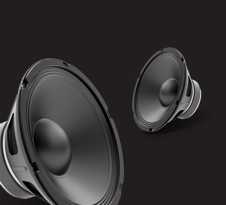 1、黑色木制箱體,配置安裝掛件。采用反射式倒向孔設(shè)計(jì),提高音箱整體音效;