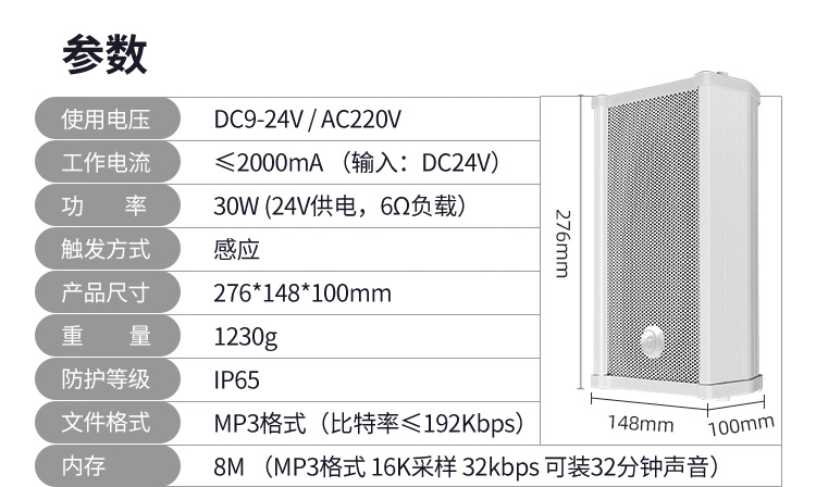 應用:景區(qū)解說、黨政宣傳、河道工程治理保護、船舶港口車站停車場等