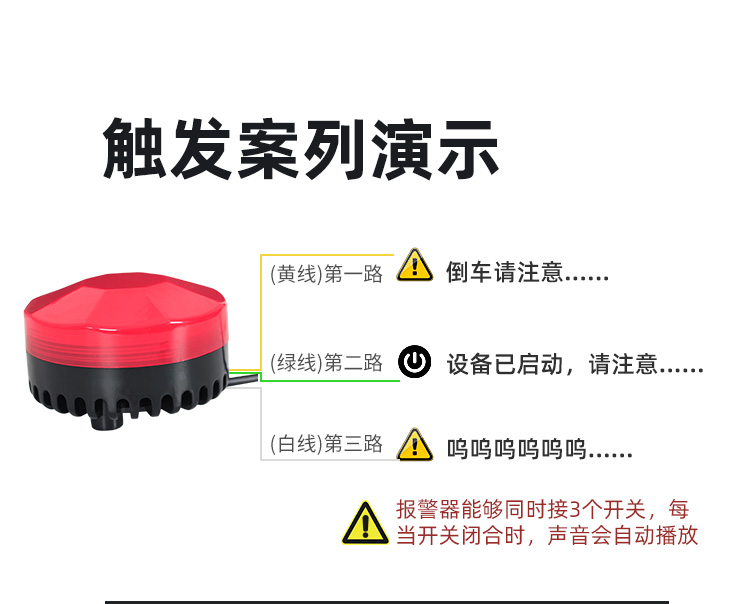 本小型聲光報警系統(tǒng)YX75R采用高亮LED發(fā)光源,防水高頻喇叭,內(nèi)嵌高穩(wěn)定性的MP3主控,具有良好操作性,是一款可USB更換報警內(nèi)容的聲光報警器,。報警器可通過開關(guān)信號控制,或RS485串口控制,應用于家庭、工廠、學校、商鋪、便利店、財務室、別墅、小區(qū)等需要防護的地方,保障人身及財產(chǎn)的安全。