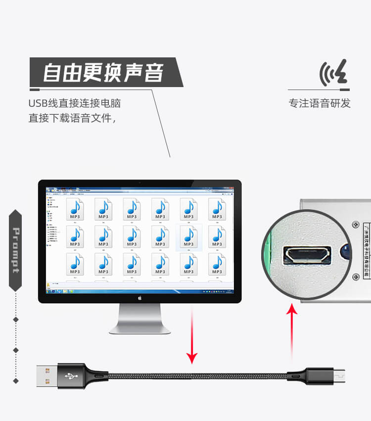 3、能夠通過基于PC的微型USB端口更新音頻文件,如使用USB閃存盤。