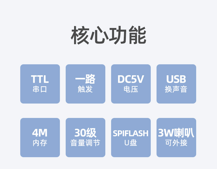 YX168A-10P語音模塊是本公司新研發(fā)的一款語音模塊產(chǎn)品,它采用悅欣電子智能MP3音樂播放模塊為處理核心,F(xiàn)LASH模塊為存儲器開發(fā)的語音播放器材,有1路開關(guān)量控制和TTL電平串口通信進行播放控制,具有操控簡單,適用范圍廣,音質(zhì)好、mp3文件掉電可長期儲存等特點