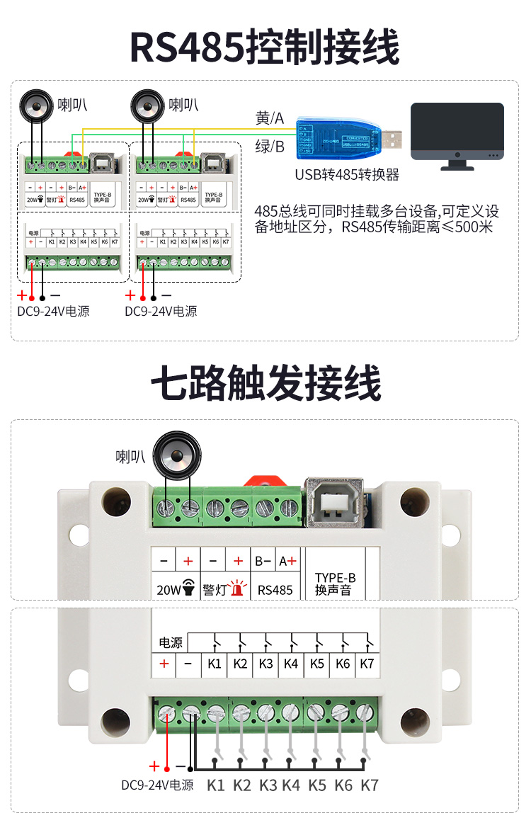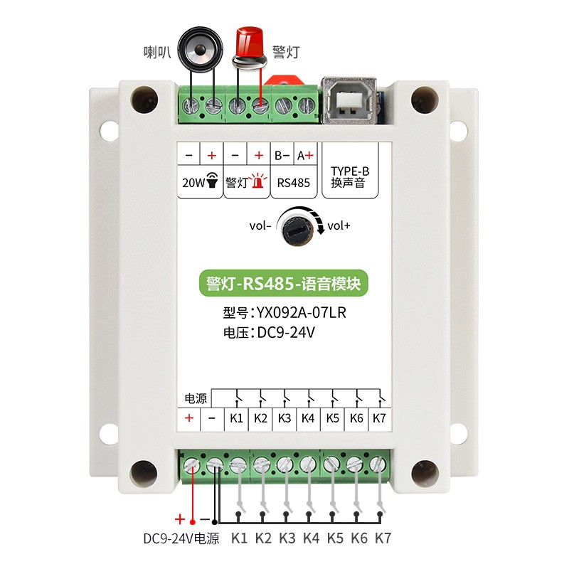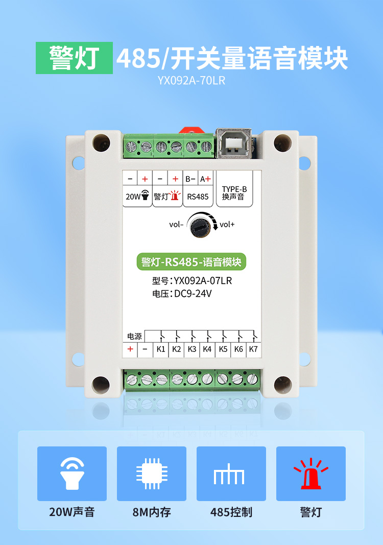 悅欣m(xù)odbus協(xié)議導(dǎo)軌安裝工業(yè)報(bào)警RS485語音模塊模塊YX092A07LR