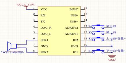 5、芯片的 供 電 只 有 一 種 ,就 是 3.3V~5V。如 果 需 要 支 持 U 盤(pán) 播 放 的 話 ,供 電 電 壓 一 定 不 能 低 于 3.7V