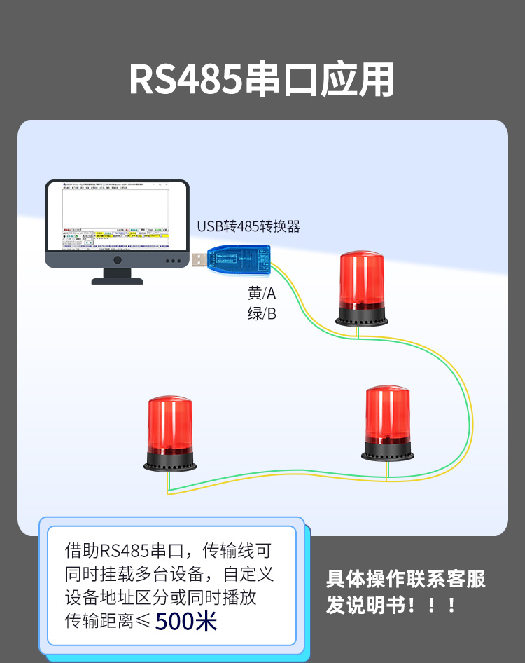 YX95R聲光報警器10W功率音量高達120分貝,多種控制方式 開關(guān)量 串口RS485/232控制,聲光一體,燈光可設(shè)置頻閃,爆閃,常亮三種模式,可自定義播報內(nèi)容,8M內(nèi)置內(nèi)存可存長達32分鐘音頻。