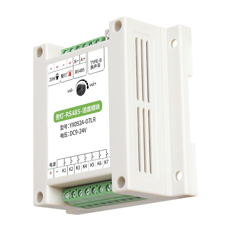 悅欣m(xù)odbus協(xié)議導(dǎo)軌安裝工業(yè)報(bào)警RS485語音模塊模塊YX092A07LR